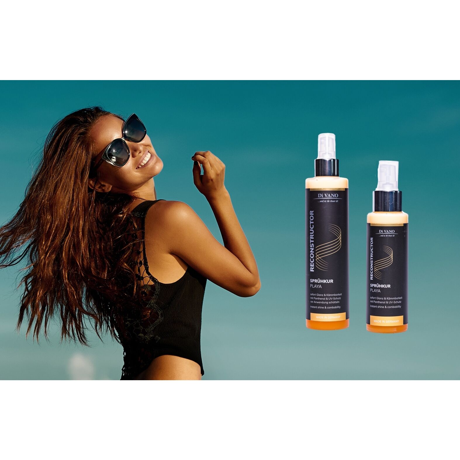 - Auf feuchtes oder trockenes Haar aufsprühen, leicht einmassieren und durchkämmen.