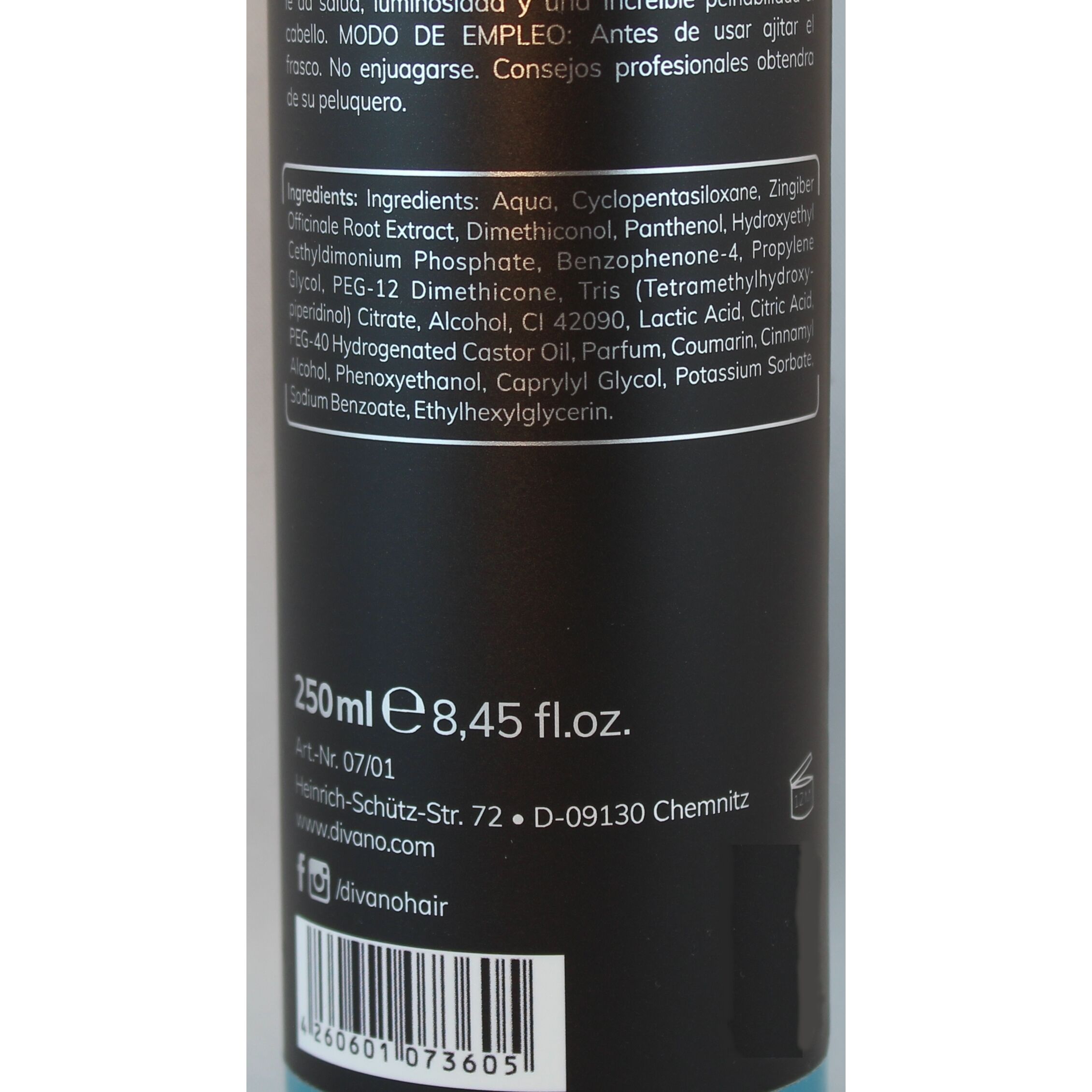 - Der hochwertige 2-Phasen-Wirkkomplex mit Panthenol und Ingwer-Extrakt restrukturiert das Haar.